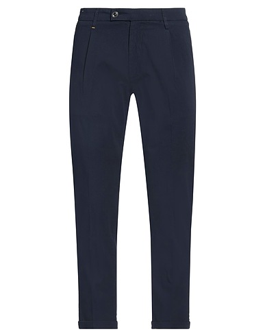 plain weave, solid color, leather applications, logo, mid rise, regular fit, button, zip, tapered leg, multipockets, contains non-textile parts of animal origin, cuffed hems