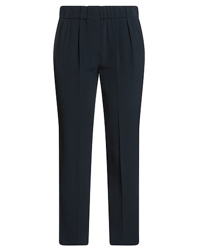 tapered pants, crepe, solid color, darts, mid rise, elasticized waist, regular fit, slit pockets, welt pockets, dry clean, do not bleach, do not tumble dry