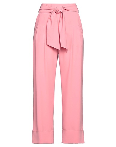 straight-leg pants, crepe, solid color, belt, high waisted, relaxed fit, folded hem, multipockets, stretch