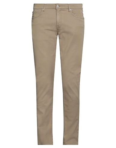gabardine, brand logo, solid color, mid rise, tapered leg, regular fit, 1 button, zipper closure, multipockets, stretch, 5 pocket