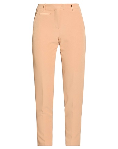 tapered pants, crepe, stretchy fabric, solid color, brand logo, mid rise, belt loops, regular fit, zipper fastening, hook fastenings, slit pockets, welt pockets, machine wash or dry clean, do not bleach, do not tumble dry, cropped