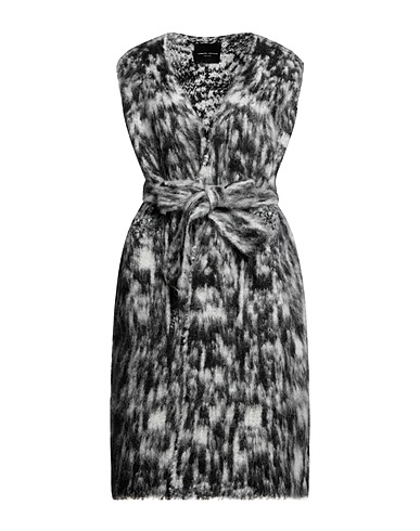 knitted, lightweight knit, no appliqués, belt, two-tone, deep neckline, sleeveless, multipockets