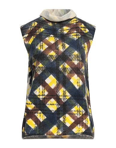 knitted, medium-weight knit, no appliqués, checked, multicolor, turtleneck, sleeveless, without pockets