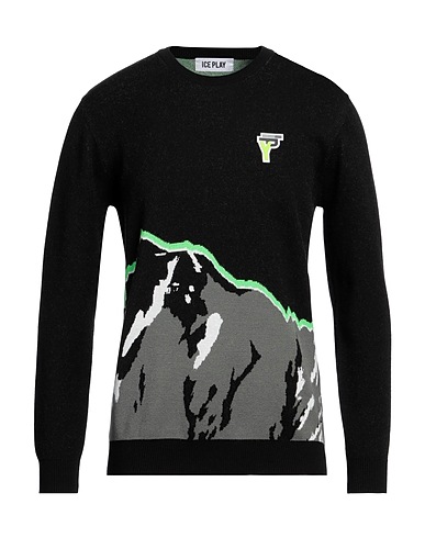 knitted, medium-weight knit, brand logo, multicolor pattern, crew neck, long sleeves, no pockets
