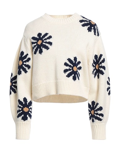 knitted, medium-weight knit, no appliqués, floral design, crew neck, long sleeves, no pockets