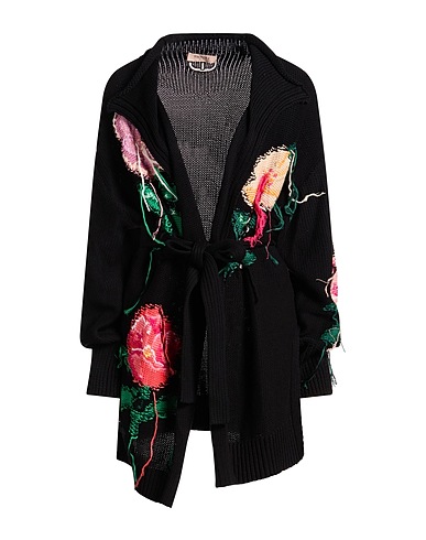 knitted, lightweight knit, embroidered, belt, multicolor, long sleeves, unlined, hand wash, do not bleach, do not tumble dry