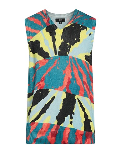 knitted, medium-weight knit, no appliqués, multicolor, v-neck, sleeveless, no pockets