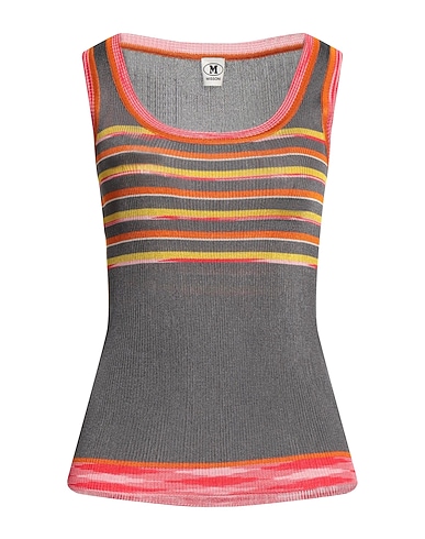 knitted, lightweight knit, no appliqués, striped, crewneck, sleeveless, without pockets, top