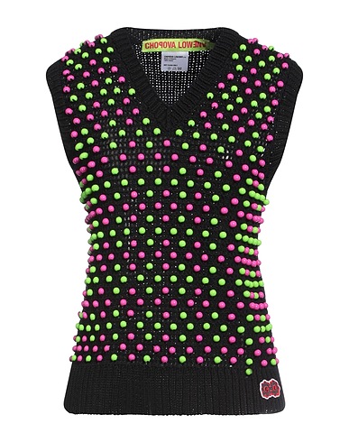 knitted, medium-weight knit, beads, solid color with appliqués, v-neck, sleeveless, no pockets