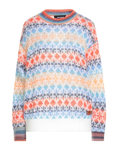 knitted, lightweight knit, brand logo, geometric-print, crewneck, long sleeves, no pockets, contains non-textile parts of animal origin, dry clean, do not tumble dry, do not bleach
