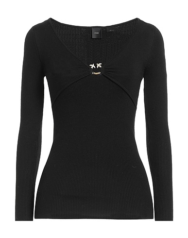 ribbed-knit, lightweight knit, brand logo, solid color, deep neckline, long sleeves, hand wash, do not bleach, do not tumble dry