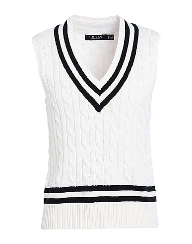 cable-knit, lightweight knit, no appliqués, two-tone, v-neck, sleeveless, machine wash or dry clean, tumble dry