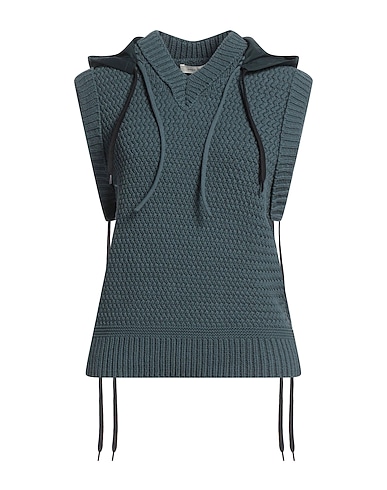 knitted, lightweight knit, no appliqués, solid color, hooded, sleeveless, without pockets, hand wash or dry clean, do not bleach, do not tumble dry