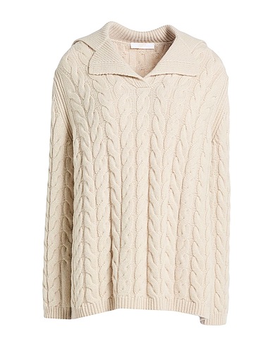 cashmere, cable-knit, mid-weight knit, no appliqués, solid color, classic collar, long sleeves, machine wash or dry clean, do not bleach, do not tumble dry, this brand runs large