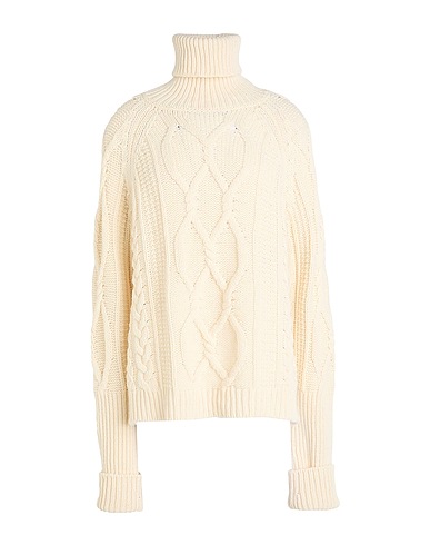cable-knit, medium-weight knit, solid color, no appliqués, turtleneck, long sleeves, side slit hemline, hand wash or dry clean, do not bleach, do not tumble dry