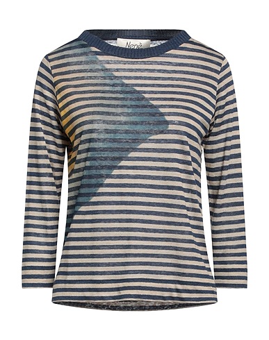 knitted, lightweight knit, striped, print, crewneck, long sleeves, machine wash or dry clean, do not bleach, do not tumble dry