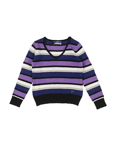 knitted, metallic, lightweight knit, striped, brand logo, v-neck, long sleeves, hand wash or dry clean, do not bleach, do not tumble dry