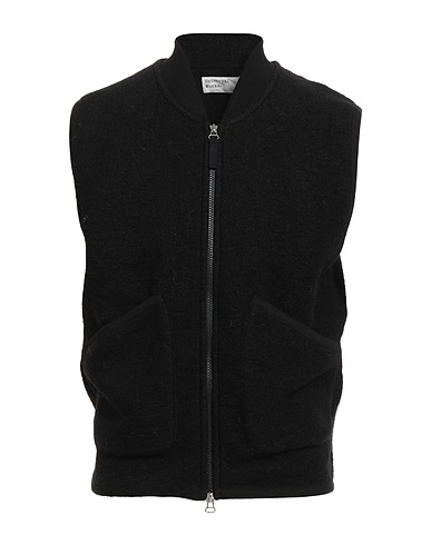 boiled wool, knitted trims, solid color, sleeveless, zipper fastening, patch pockets, machine wash or dry clean, do not bleach, do not tumble dry