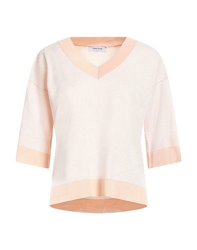 intarsia-knit, lightweight knit, metallic, no appliqués, solid color, v-neck, 3/4 length sleeves, hand wash or dry clean, do not bleach, do not tumble dry