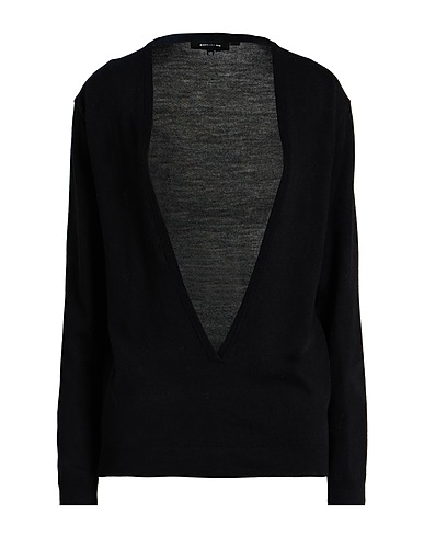 wool, lightweight knit, solid color, no appliqués, deep neckline, long sleeves, dry clean, do not bleach, do not tumble dry