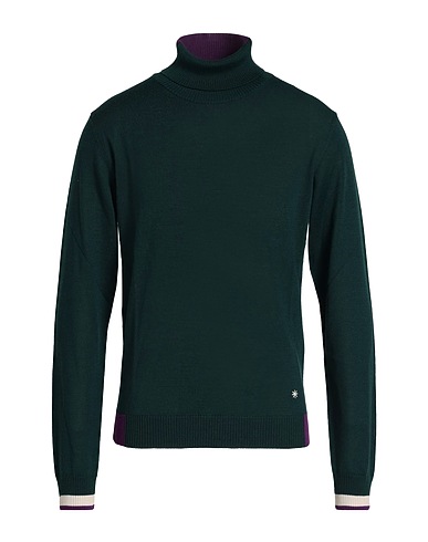 knitted, lightweight knit, embroidered logo, two-tone, turtleneck, long sleeves, machine wash or dry clean, do not bleach, do not tumble dry