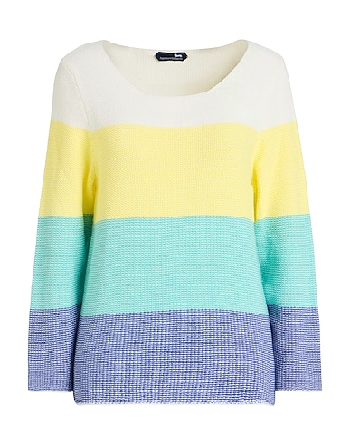 knitted, lightweight knit, no appliqués, multicolor, scoop neckline, long sleeves, machine wash or dry clean, do not bleach, do not tumble dry