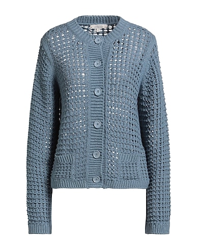 open-knit, medium-weight knit, no appliqués, solid color, long sleeves, button fastenings, patch pockets, dry clean, do not bleach, do not tumble dry