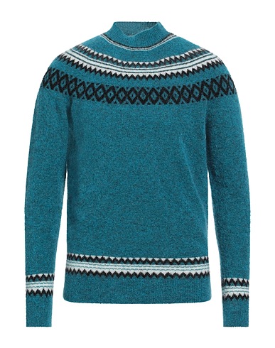 jacquard-knit, bouclé, medium-weight knit, stretchy fabric, no appliqués, mélange, mock neck, long sleeves, hand wash or dry clean, do not bleach, do not tumble dry