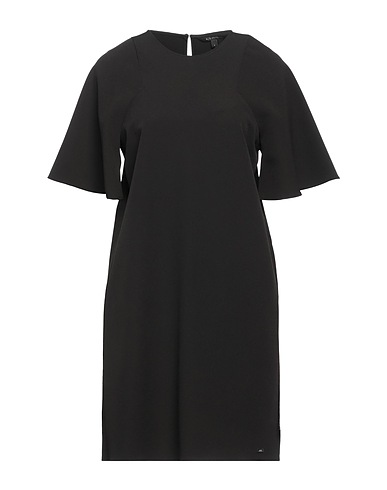 flared dress, woven, solid color, no appliqués, crewneck, short sleeves, unlined, 1 button, without pockets, stretch