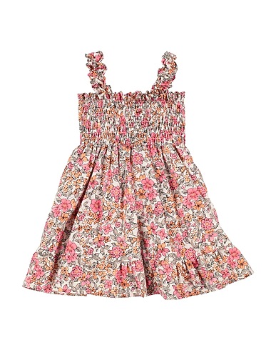 woven, floral-print, shirred, crewneck, sleeveless, unlined, without pockets, machine wash, do not bleach, do not tumble dry