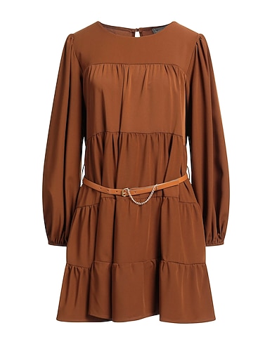 Twill, Solid color, Frills, Long sleeves, Belt, Crewneck
