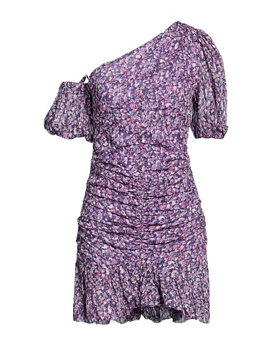 one-shoulder dress, woven, floral-print, gathered, detachable application, scoop neckline, one-shoulder, cuffs with elastic, partially lined, zipper fastening
