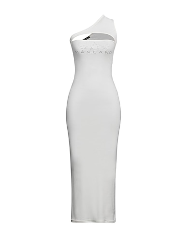one-shoulder dress, jersey, solid color with appliqués, brand logo, crystals, scoop neckline, one-shoulder, unlined