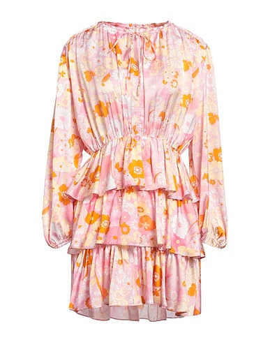 dress, satin, floral-print, tiered, crewneck, long sleeves, unlined, without pockets