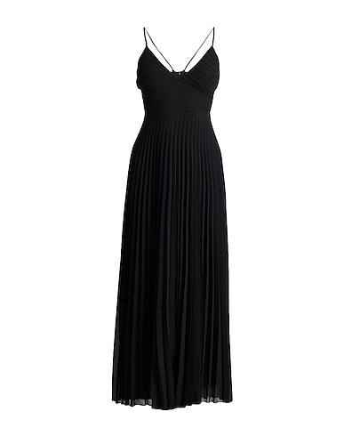 chiffon, pleated, solid color, v-neck, sleeveless, fully lined, zipper fastening, without pockets, pleated dress