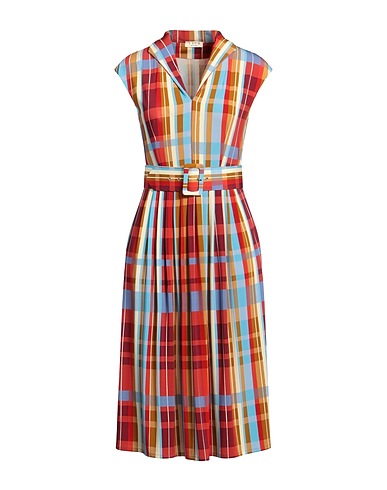 synthetic jersey, belt, checked, v-neck, sleeveless, fully lined, no pockets, stretch, trapeze style