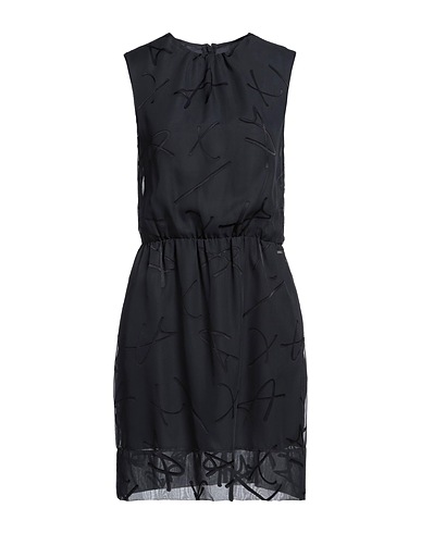 dress, crepe, solid color, brand logo, crewneck, sleeveless, fully lined, zipper fastening, without pockets