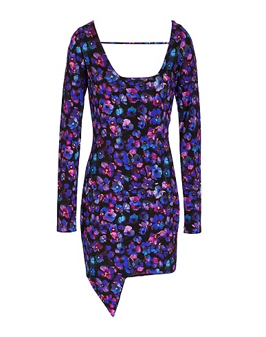 PRINTED JERSEY ASYMMETRICAL MINI DRESS W/ L/ SLEEVES
