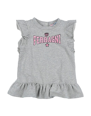 french terry, ruffles, brand logo, solid color with appliqués, crewneck, short sleeves, snap fastenings, no pockets, stretch, wash at 30° c, do not dry clean, do not bleach, do not tumble dry, iron at 110° c max