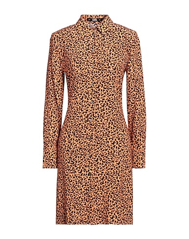 crepe, brand logo, leopard-print, classic collar, long sleeves, unlined, button fastenings, no pockets, shirt dress, small sized