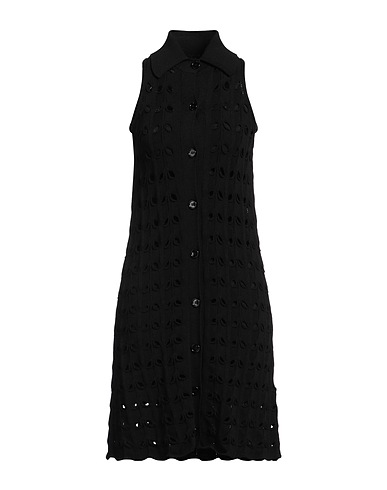 knitted, perforated, lightweight knit, no appliqués, solid color, classic collar, sleeveless, unlined, button fastenings, bodycon dress