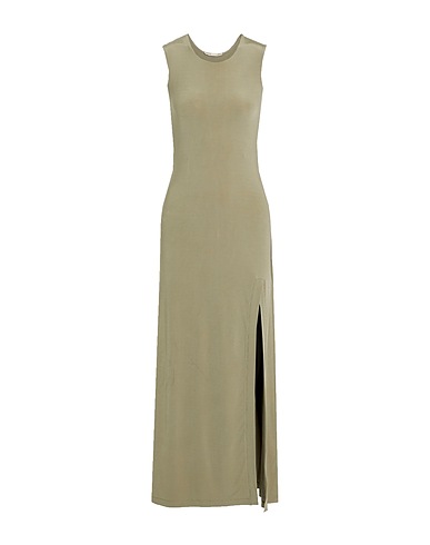 jersey, no appliqués, solid color, crewneck, sleeveless, unlined, no pockets, front slit, stretch, flared dress