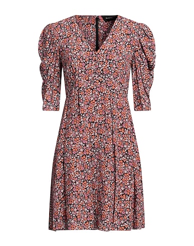 woven, no appliqués, floral-print, v-neck, 3/4 length sleeves, unlined, zipper fastening, no pockets, flared dress