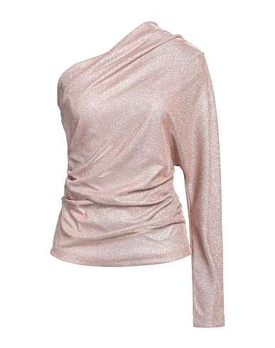 one-shoulder top, jersey, metallic, stretchy fabric, solid color, no appliqués, hand wash or dry clean, do not bleach, do not tumble dry