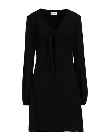 crepe, no appliqués, solid color, deep neckline, long sleeves, unlined, zipper fastening, without pockets, machine wash or dry clean, do not bleach, do not tumble dry, flared dress