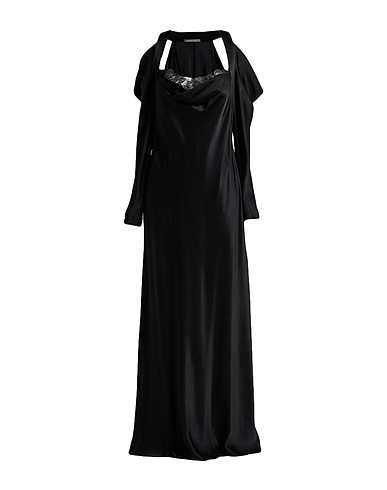 flared dress, satin, lace trims, solid color, draped neckline, long sleeves, unlined, without pockets, dry clean, do not bleach, do not tumble dry