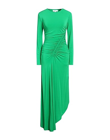 jersey, draped, solid color, crewneck, long sleeves, fully lined, zipper fastening, without pockets, stretch, dry clean, asymmetric dress