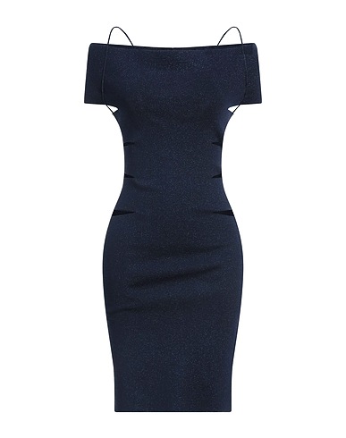 knitted, metallic, lightweight knit, cutout, solid color, draped neckline, sleeveless, unlined, without pockets, dry clean, do not bleach, do not tumble dry, bodycon dress, designed for a loose fit