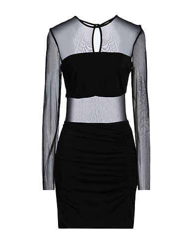 synthetic jersey, tulle, gathered, solid color, crewneck, long sleeves, partially lined, zipper fastening, 1 button, without pockets, stretch, hand wash or dry clean, do not bleach, do not tumble dry, bodycon dress