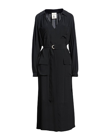 flared dress, crepe, solid color, belt, classic collar, long sleeves, unlined, multipockets, dry clean, do not bleach, do not tumble dry